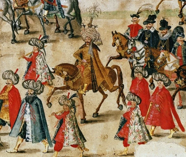L’ingresso dell’ambasciatore persiano a Cracovia nel 1605 in occasione delle nozze di re Sigismondo III in un affresco di Balthasar Gebhardt (Wikipedia)